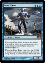 Round 4, I play against a familiar dude named Jake. I’ve played Jake once before, at the M12 release tournament. I had a pretty sweet deck that tournament, hits of which included a Frost Titan and a Mind Control. I did not lose to Jake that day.