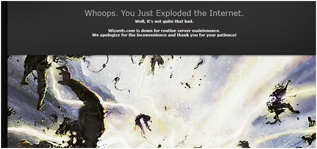 I know! It's irritating when you go to use it, and it's the only part of the WOTC website that's down. Sad face. It happens across various PCs, and various browsers. Sometimes it'll be the search function that's down with the above image, but when I hotlink to a Google link it works. Other times that workaround won't um.... work around the issue. It's not easy to put in a help ticket about this, and it will always be restored hours before anyone reads it - I don't even bother putting them in anymore. But it's irritating, sure!