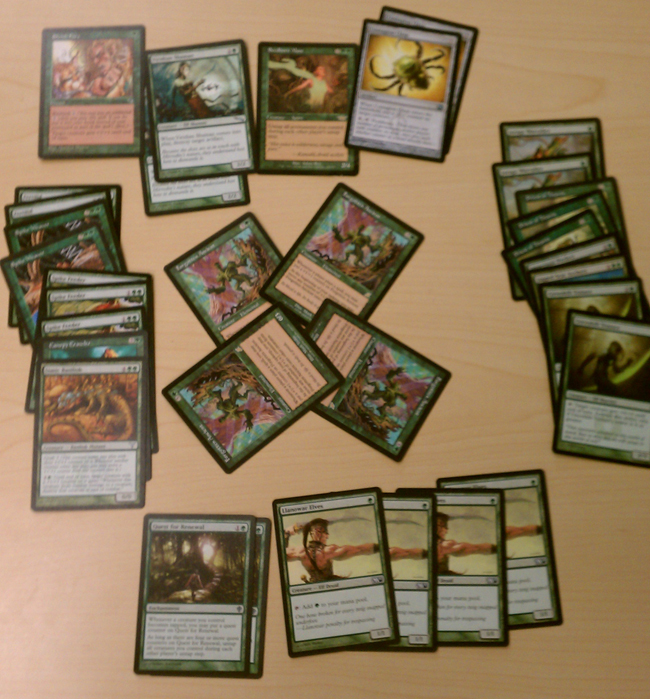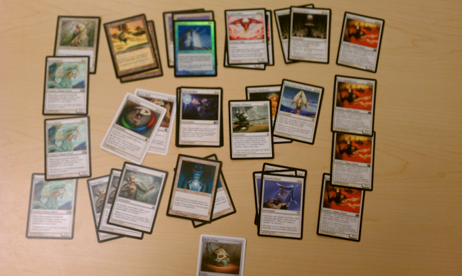 Anyway, this deck’s reliance on many creatures is a weakness, and it’s very hard to go off. It really needs more guys that tap for multiple mana in play. Not very many have been made outside of green, and I don’t have a lot of them. Perhaps I should raise the number of Gold and Silver Myr and replace things like the cute Angelsong or the Pentad Prisms. Here is the deck!