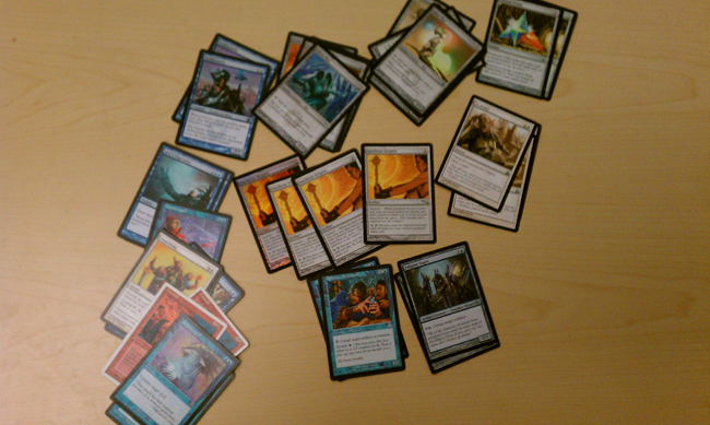 I knew I had to build a deck around Isochron Scepter since I had a full play set running around. Plus, I wanted at least one deck with sixty-one cards! This is a combo deck that goes off by imprinting To Arms! under the Scepter. You pay 2, tap the Scepter, and untap all creatures, but before that, you tap them for a lot of mana. Then, you use Filigree Sages to untap the Scepter and spend 3 of the mana you made. As long as you make more mana than you spent, you end up with extra mana. That extra mana builds and builds as you repeat the process until the deck explodes into mana and plays Fireball with Alloy Myr or a Pentad Prism.