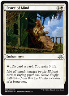 This is my highest ranked reprint that's not a part of a set of cards. It's worthy of hitting this high (and for a while, was #1 on my list before I promoted the next group of cards up after consideration). Peace of Mind was a playable uncommon from Exodus that I (and others) ran in Vintage decks as well as casual and other formats. I've probably put it in at least 20 decklists for you over the years. But it's not a card on a lot of lists as this deep or impactful card. It's great for madness enabling, plays well with graveyard oriented themes (like reanimation) and plays well with cards that seek to be discarded. So, adding in Peace of Mind into a new printing of madness made smart, mechanical sense. But the flavor? Art? Flavor text? Mechanics? Everything was perfect. I know that there were players that saw this card, and never even realized it was a reprint because of just how much of a 10 this card is at hitting the beats of the set and mini-block. Perfect. It's even a card to target in drafts for the right decks and archetypes. Perfect.