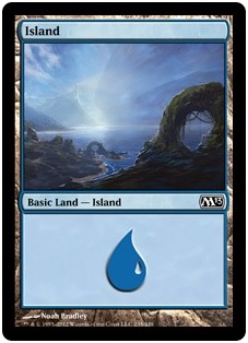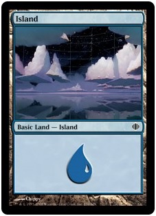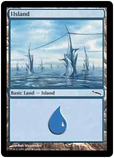 I know! I think Donato's Island was my first "whoa" moment with an Island art, and then things began to really improve for me moving forward. This has always been a classic for me, with the storm, the art, and the strong sense of the beaten rocks and the island that have holes in them from the elements. This island's status as such is clearly in jeopardy. It may soon be no more, having been broken to below the sea level. This remains my favorite art, and I wish that Wizards would print a foil version of it (It was released one set prior to foils in Urza's Legacy).