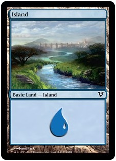 I know that I foreshadowed this earlier! I feel like Invasion was the first set to really have a lot of top-flight basic land art done. John's strong work was noticeable as well. One of the things I really enjoy about this piece is just how much story Avon can tell with just a little. Who put those staffs there? The gorgeous Island Peak just past eyesight and only lined in the sky. It hits me in my feels.