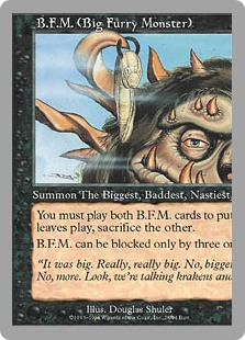 - In this game, your foe is none other than the Big Furry Monster, only improved a little. If you have both halves, then drop them into play just to show off what you’ll have to take out. The Bigger Furry Monster™ is 100/100 and unblockable. And it just costs 12 mana and has haste.