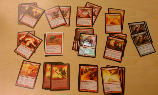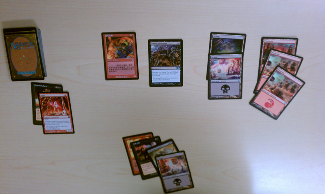 And that’s the deck. Because my madness cards lack the consistency of numbers (we need another Reckless Wurm and two more Fiery Tempers, for example), the deck is a bit uneven. It’s fun to play, but it loses more than it wins. Here I am playing it on the fifth turn.