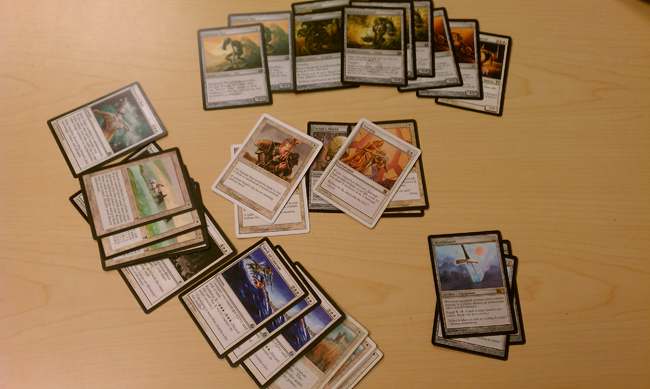 I don’t have a lot of four-ofs among my rares. I used to, but then I went through and added one of each card to Abedraft (A box we draft out of with a copy of every legal card in Magic). When I saw that I had four Oath of Scholars in my deck stock, I pulled them for a future deck idea. Eventually, I decided to combine it with white for discarding and fun! The idea is to always have fewer cards in your upkeep by blowing through them—either by discarding them or by playing them for cheap. The most expensive card in here is the actual Oath . . . and the Automaton.