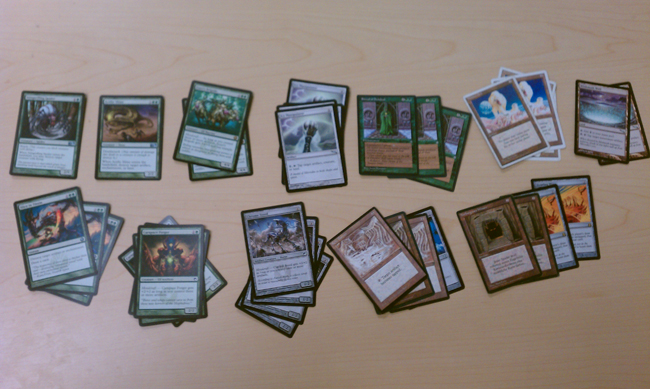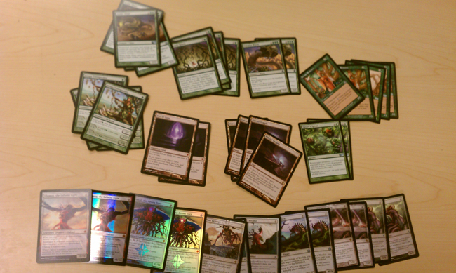 One of the major themes of this project has been the big-creatures-out-early archetype. I don’t have enough copies of things like Eureka, Show and Tell, or Sneak Attack to run those decks. I have plenty of second-level combos though. From reanimation to green ramp to abusing Mana Flare and Early Harvest, I’ve done a variety of decks that drop something quickly. Having a deck that tries to drop a quick Eldrazi was another natural deck for this subgenre of combo decks.