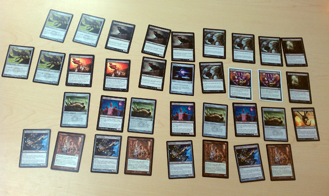 You can tell I was reaching the end of my deck stock when you look at how scattered the burn suite is. This deck wins by accumulating a lot of mana with the Posts and then looks to drop a big Wurmcalling or Disintegrate. Since the main element of the deck is the Posts, we have Reap and Sow and Expedition Map to fetch them. Once we have a few Posts, we are in mana heaven.