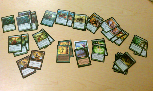 Once I had my support, card drawing began. I wanted Harmonize, but those had quickly gone to other decks. So, I added whatever was still around, and I had Crystal Balls, Tops, and a Folio to give me some sorting and drawing. Treetop Village was an elegant addition in case things don’t work out Oathwise.