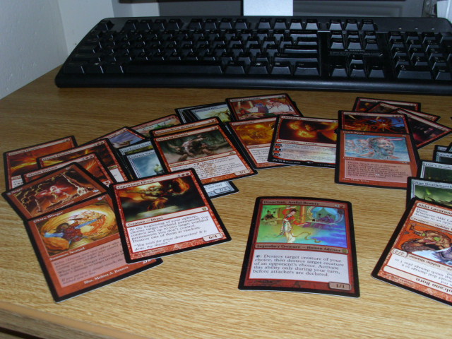Death Spark is a great poking machine. I’ve played it before, and know how to run it. As one of your guys is about to die, play Death Spark, shoot someone or something for one damage, and then recur it on your upkeep for one mana to keep on going. You can also use it to shoot something for a damage to kill it off, and then sacrifice a creature to put it on top of the Spark later for more recursion. It works very well here with your Phoenixes and Goblin Bombardment. You know what? I’ve talked myself into it. Let’s toss it in. If it doesn’t play well, I can pull it later.