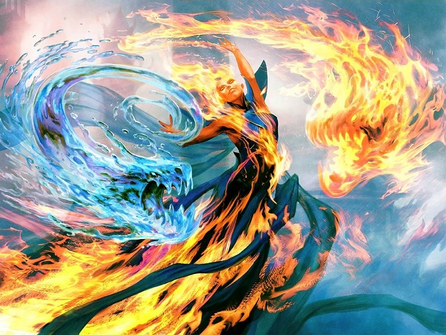 Hello fans of Red and Humans and Wizards and tokens and spells and Dancers of Fire. I've got your card right here! This is our second-to-last mono-Red card in today's countdown. I really like Rionya! I like the colors that were used in her body, especially her hair. I like the blades in their hand and the dripping fire from them. I like the hint of fire in one of her eyes. I like it all! What do you think? Who crafted this work? Heonhwa Choe! They aren't even at 20 cards yet with just 18 cards under their credit. Those cards include Double Vision; Flux Channeler; Orah, Skyclave Hierophant; Skewer the Critics and Volrath, the Shapestealer. This is Heonhwa's first appearance on my countdown! Welcome artist!