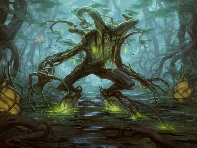 This Treefolk Druid is the gift that keeps on going! This is the only card in the game that begins with "Ezz." Odd that I care, I know. Insert smiley face here. 4/6 with reach? Tap to gain life? Reduce the cost of your fellow dorks? Why isn't this legendary? No idea. But I do love this Ezz...'s art as well! I prefer the lanterns in the variant art to the base one. I really love the glowing green in the feet and heart of said Treefolk. I love the spines and figures of said Druid. Love it lots! Thanks Kieran Yanner! Kieran is also in the 150+ club with 162 pieces of art to his name in the MTG canon. You can check it out here. From Aegis Automaton to Wretched Confluence, he has a lot of letters under his banner. Great stuff Kieran!
