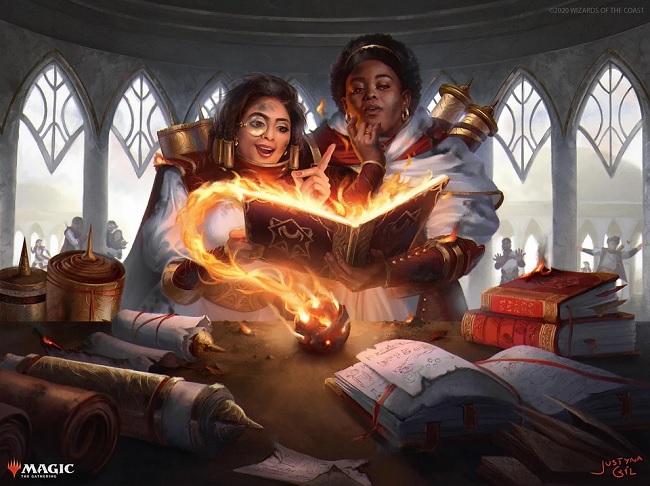Did you know that Commander 2021 is the debut set for Justyna Gil? They have two pieces art - this one and fellow Red card Fiery Encore. Great stuff! I love the lush art in this piece as it feels full to me. The windows? The book? The energy cascading around it? The books to the right of the piece (their left)? The faces? Scrolls? Scroll case looking things on their back? It's just so well done, and I really enjoy it! Thanks, Justyna!