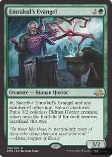 We have some tricks in here too. Some creatures will sacrifice into tokens. Tukatongue Thallid and Voice of Resurgence come to mind as useful fodder for that Evangel since you’ll get both. (You could also run something like Kitchen Finks for sacrificing and staying). Meanwhile we can play Fresh Meat after sacrificing the team for a bunch 3/2 Eldrazi and get a bunch more of 3/3 Beasts! Or you can play it post removal to get your army back. You can also use Rootborn Defenses to keep your stuff from dying and to make another token.