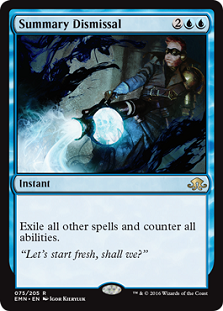 I feel like there is a strong amount of Mono-Blue control right now in Standard, especially with Summary Dismissal hitting booster packs everywhere. So let’s see what I’d hack together if I could.