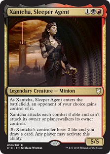 What is a Sleeper Agent? It's someone who, by all appearances, is trying to be your friend. They want to help you out, and it appears genuine. They give some cool party favors. But then, when you least suspect it -- BOOOM. Dagger to the chest. That's Xantcha. She's someone who seems like she'll be on your side. She's a 5/5! She can swing at your foes! Then you look down and someone died of her Commander damage and you've taken 20 from her life draining and are about to die. She is a perfect Sleeper Agent, because she seems to give more than she is, and then she is active and helps to win the game.