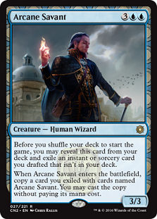 If you are drafting, then you can get a free spell. So you draft, and then exile a spell. Then drop it later and get that spell for free. The result is a 3/3 creature for 5 mana that’s only a little under curve and comes with a free spell. How many drafts are out there where you grab a powerful card from another color surprisingly late? How often do you see a card at pick 9 or 10 that should be 3 or 4? What about when you started with one color, and then switched later when it dried up? What about that spell that’s good, but costs too much mana to rely on? Well you can use the best (sorcery or instant) spell you drafted, but aren’t playing from that color. And you can switch the card you use for the Savant as well. After Game 1, you may like that Infest to clear out small stuff your foe seems to have a lot more of than the normal Burn Away you have. You can suit the choice to the foe and the situation. (Plus, the card is not in your deck and thus does not impact your color identity. So in my Commander Cube, I can run Arcane Servant, and then post-draft, play any sorcery/instant I drafted that’s not on color and get it to play.)