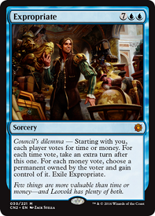 And this is a quick and dirty shell built around the powerful Expropriate. This deck only wants the one copy, but others could easily toss out more, and you can run stuff like big splashy spells, fun U/R sorceries that go big, and really exciting effects. Timmy isn’t always about the big fat creatures. He’s often about the big fat spells. Use your tools like Sensei's Divining Top and Sigiled Starfish to find the good stuff, and then toss it on top for a Galvanoth trigger. Or you can shuffle up and get a useful flip from Temporal Aperture. And other cards and here to party as well. Go big with Expropriate!