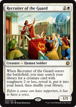 Well that’s it. After all of that, I have to say that White in this set definitely lived up to its billing, with great cards that span the best the color offers and the top quality of the set. Nothing tops cards like Recruiter of the Guard. So get your Conspiracy on and draft some surprises and powerhouses from White.