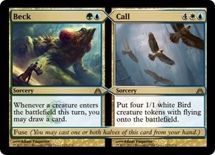 Card drawing? Beck is great. Call is . . . overpriced by a lot. I mean, we all know that. But Beck? That’s an amazingly sweet card. Given that you are playing Green with its normal rampish-quality and you could be getting the four tokens and additional cards drawn, I’d argue Beck // Call might be the 3rd best split card when considering tournament pedigree after #1 below and . . .