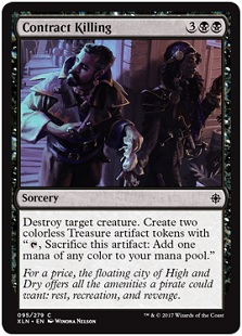 This deck is a control deck that wants to kill and blow up a bunch of stuff in order to get the Treasures, while also running a few Treasuring options too, but nothing too major. It’s not selling out for the five-mana sorcery Contract Killing to get some Treasure, as an example. Nope! We’re running a few cards, and then leaning on the killing to help. Mutilate and Damnation are both here to give you cheaper four-mana sweeping options for the board.