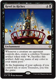 So get your Treasure on! From Hunted Phantasm to Doubling Season to a simple Damnation, you can find a lot of awesome treasure from the depths with the Revel in Riches.