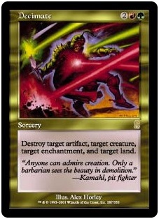 Decimate was originally just a generic card. Then it was later recast as a Gruul style card (which it certainly is). It wasn't reprinted for Standard, but it was invested with a new Gruul feeling life.