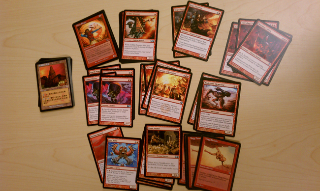 Sure, the deck isn’t perfect, and it could use some fine-tuning, but it has two plans for victory—in case the first is stymied—and you have to respect that. After playing it, it’s the deck least likely to go off with the first plan, but I have Sparkmaged or Pyromancered someone twice. Anyway, here is the deck in all of its real-life glory: