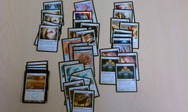 Decks are fun! Everybody likes decks. A couple of weeks ago, I began a challenge to build one hundred decks at an average of five decks per week. Unlike normal decks, I would build all of these decks in real life with my actual card stock. That means the ideas are limited by what I actually own. Over the course of the next few months, expect an update with new decks roughly every other week. We’ll also have pictures of the decks in real life.