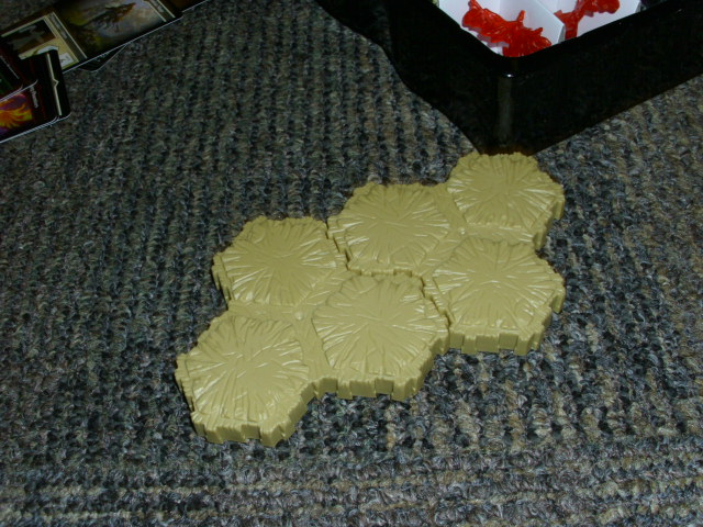 This is the terrain from HeroScape Arena of the Planeswalkers. It is a perfect fit. That’s as designed. The HeroScape terrain was one of the most prominent and successful features. It’s a set of interlocking terrain that you can put together in order to build the game board prior to play, and it’s a lot of fun to do.