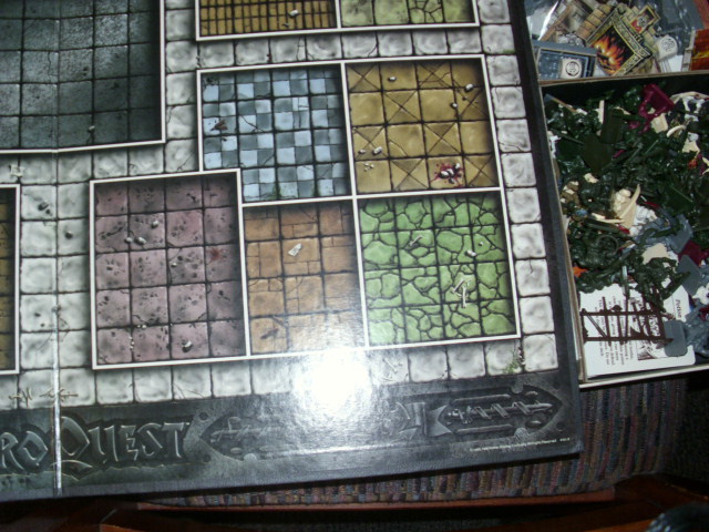 HeroQuest was a replayable game, with scenarios, and you would reset the board each time you played since it changed from one scenario to the next. You had players playing various characters, with 3-D plastic miniatures and 3-D terrain. Here’s mine opened up.