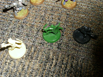 I’m not sure if my camera gives good view, so here are a pair of two-space figures—the top one is from Magic, and the bottom from HeroScape.