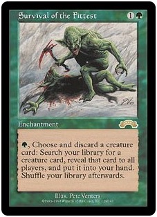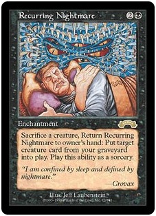 Recurring Nightmare might get the banhammer in a lot of places, (*cough*Commander*cough*) but Survival is the strongest card from the block. It's solely responsible for causing a plethora of problems and complications with things. It encourages a one-of deck-build with creatures that creatures a strong Swiss Army knife approach, and tons of folks loved that. Including myself. It directly led to the onerous RecSur deck that was arguably one of the strongest Standard decks of all time.