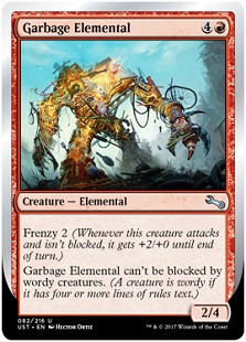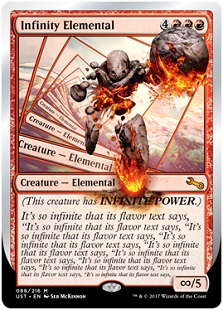 THANK YOU! This is my actual, proper, Top Five card for Unstable.This is a disturbingly good card. Forget the 2nd part of this card for a moment. Just imagine that every graveyard in the game is now yours. What does that mean? Well, you can flash back a card with flashback in your foe’s ‘yard. You get the bonuses for Anger or Wonder or the activated ability of Genesis or Champion of Stray Souls. Your reanimation stuff that would normally only do something with your own graveyard will now potentially target anything, such as Immortal Servitude or Obzedat's Aid. You’ll easily have threshold or spell mastery. And as this card shows, a creature that swells with the size of your graveyard will also do so with others. Mortivore is a good example. So there is a lot here to value. They probably put this ability on a creature to make sure that it was more easily answered! Also, note that the graveyards are still your opponents. It uses the English term, “also” so they are now both. That could create some interesting conversations when you cast Living Death.