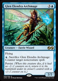 Ah yes. Glen Elendra Archmage. Also called "Two Hard Counters" from my friends as they tend to run too many non-creatures in their decks and don't always have answers for it. Enter Ravenous Chupacabra or Shriekmaw. Or normal dorks they can't counter. Once it's resolved, the counters from it are, technically, counter-able with something that can counter an activated ability. But, the resolved Archmage is virtually uncounter-able as most people aren't going to have that ability in a pinch, making this a reliable two-for-one every time. Because it's a creature it can swing, grab a piece of equipment and punch you in the face with it, so you can't just ignore it and hope that it'll get used up by other players. You must play into it at times. That's awesome! What isn't awesome though is how long this thing has languishing on the sidelines as other Faeries were getting printed and used, but it wasn't getting called up to the big Reprint Games. (Other than a quick showing in the first Modern Masters which was under-printed and long ago). Well, welcome to the Big League Mon Faerie.