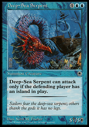 Deep-Sea Serpent – Apparently, I like color in my art. Here, we have the obligatory underwater-serpent, destroyed-boat scene, with a lot of color to it. Would this have been better art than some similar styles in Theros block?