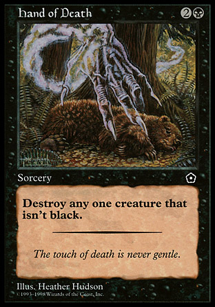 Hand of Death – Do you like cute bear cubs? Don’t look at this card! Heather Hudson is the anti-bear! Her spooky Portal Second Age Hand of Death is a huge improvement on the Portal art, and it has the spectral hand ending the life of our poor bear. Sad bear.