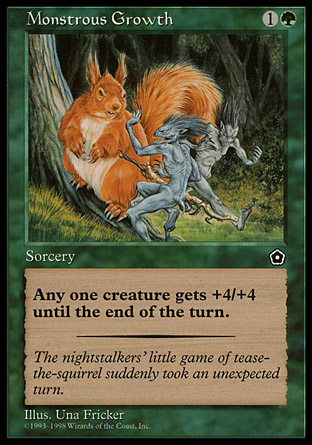 Monstrous Growth – This is not really the best card ever; both the Portal and Portal Second Age art are better than the Ron Spencer one that was reprinted again and again in core sets. Do you want a giant cat or squirrel? Then check out these pieces!