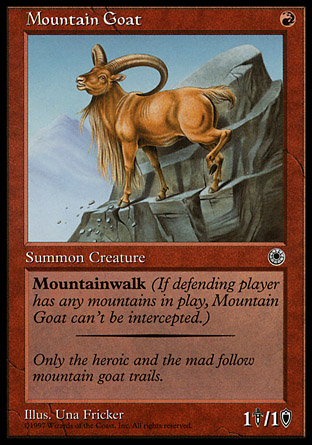 Mountain Goat – All right: You vote. Which is better, the original Ice Age art that was reprinted twice or this fun Una Fricker piece from Portal that few of you have seen? Grab your Goatnappers!