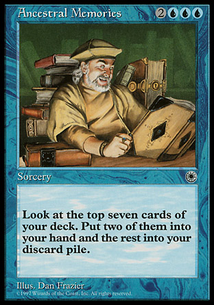 Ancestral Memories – Each of the three arts for Ancestral Memories has a different take on the card, and I think each is interesting. This one is neat because it's your typical bibliophile scene in blue, but I think Dan Frazier does a really compelling job getting it across. From the hat to the colors, it my favorite image of the three.