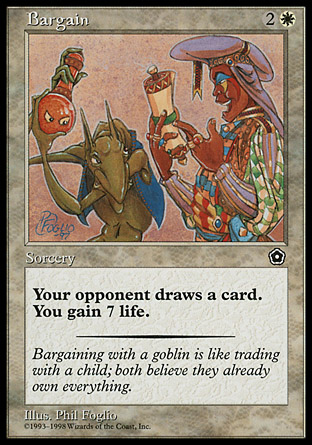 Bargain – And now we have left the As behind—yay! Here's a solid Phil Foglio piece. It's not his best Portal work, but it has his playful take on all things Magic in style.