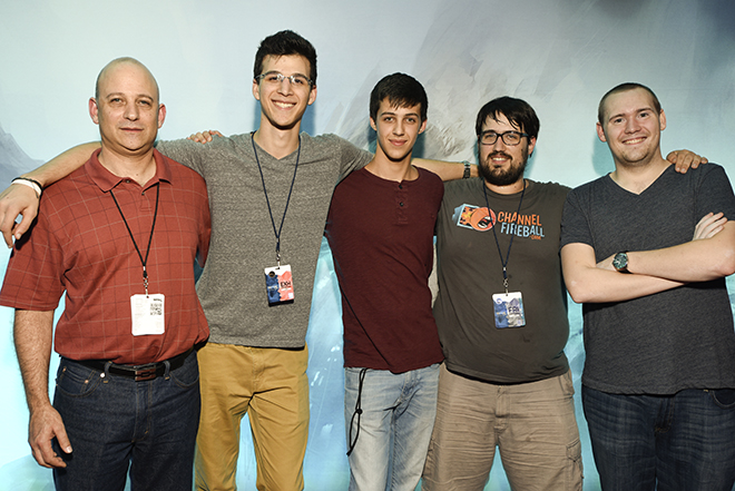 For the preview, Shahar Shenhar’s father and brother joined him and select others in attendance at PAX, including Sam Pardee and Owen Turtenwald. (Photo courtesy of Wizards of the Coast/Craig Gibson)