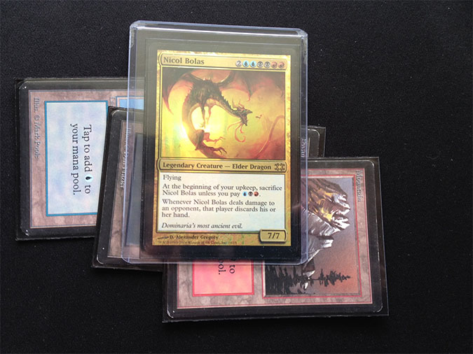 Here, we see Nicol Bolas sprawling over his domains. Place the lands required for his upkeep under him. Wise Planeswalkers don’t take chances with their 8-cost commanders. For more tips to avoid embarrassing mistakes, see my Foolproof Magic articles.