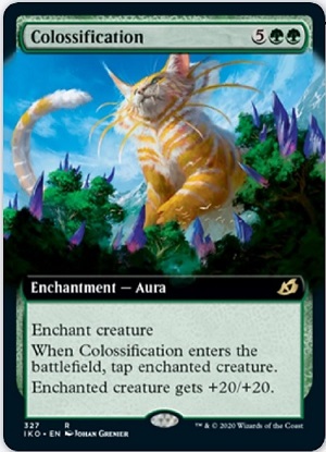 Let's talk creature combos. There aren't too many of them in mono-Green, but we don't need anything too fancy to win. If you -2 Vivien and cast Craterhoof Behemoth, you can search your library for Avenger of Zendikar, which will come into play first with a host of Plant tokens. Those creatures will have summoning sickness, but any others you have with the Craterhoof Behemoth will get enormous. Yeah, like rally big. We're talking the size of a kitty with Colossification.