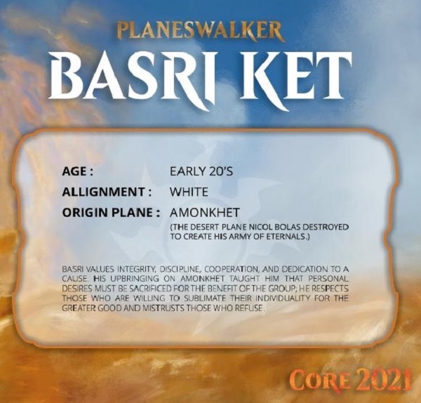 During the preview season, Basri Ket made a dramatic entrance, with an emphasis on the drama. The initial marketing blurb made this White 'Walker sound more than a little villainous, which it seems was not the intent. Though this post was deleted by Wizards of the Coast, I've dredged it up here because more than one person has told me they wished to read it.
