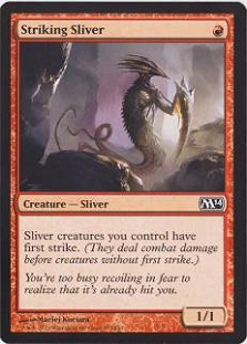 Speaking of first strike, both these ancient slivers synergize splendidly with one of the newest. Striking Sliver was serviceable when I played it Modern. In Legacy, oddly enough, it excels.