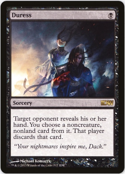 Of the above cards, the first one I would want is Jace, as he enables all your graveyard synergies. Next, I would hunt down Mana Drain, as the powerful counter gives you another way to hard cast your most expensive creatures. It's costly, but if money is no object I would also covet the IDW Comics promo Duress.
