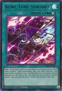 Kewl Tune Synchro lets you add 1 Kewl Tune card from your Deck to your hand, then immediately Synchro Summon 1 Tuner Synchro monster. This is the card you're going to want to save for your opponent's turn to use as disruption since the Kewl Tune may deck monsters can get their "when sent to the GY as Synchro Material" effect during your opponent's combo. The other nice thing is that you can activate up to 2 copies of Kewl Tune Synchro per turn for double the fun.