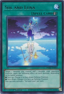 You won't be going into the Extra Deck very often since the Special summon effect in the hand locks you into only Summoning in face-down defense position. That's why it's important to back up the strategy with strong support cards. Destructive Daruma Karma Cannon and Sol and Luna are two cards that synergize well with the strategy and can heavily cripple your opponent's monsters. Junk Sleep offers another way to trigger your flip effects without waiting on your opponent's specific actions.