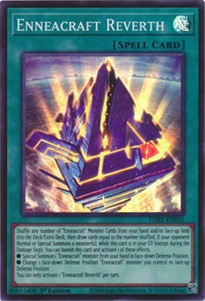 Enneapolis also allows you to return your Enneacrafts to the hand. A perfect way to reset their Flip effects for the following turn. Or if you're in a hurry you can use the 2nd effect of Enneacraft Reverth to change 1 face-down defense position Enneacraft monster you control to face-up defense position. Its first effect allows you to shuffle Enneacrafts from your hand into your deck to draw the same number of cards. A good tool to fish for hand-traps or other missing cards.